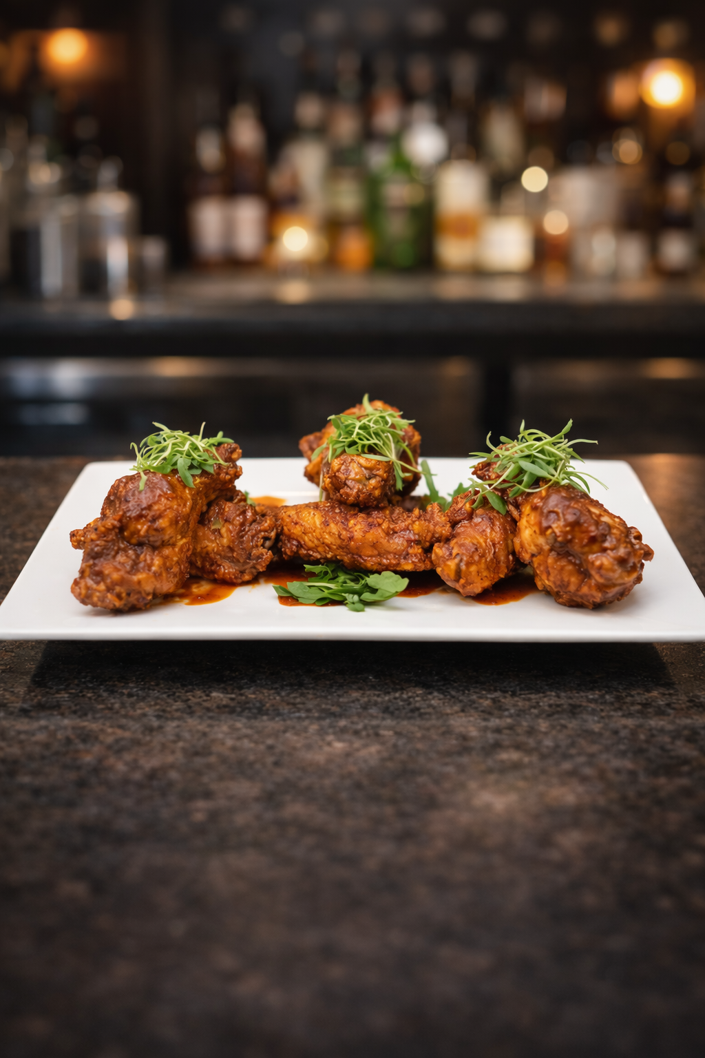 Crisp-fried and tossed with our in-house Besos de Fuego hot sauce-Bold, fiery, and deeply savory.