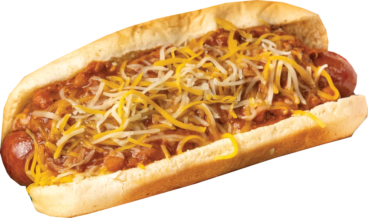 All Beef Frank wrapped with bacon topped with Mexican style homemade-chili mixed with beans topped with shredded cheese.